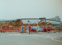 Brachiozord opens up his compartments, revealing the main three Dinozords inside. Tyrannozord races out of the side compartment. Pterazord flies out of the front compartment, and Tricerazord marches down Brachiozord's neck. |