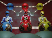 The three Dino Rangers morphing sequences: Yellow, Red, Blue. |