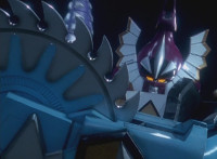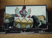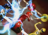 Shot 1 is textless, unlike source; cuts follow-ups of Megazord & Dino Stegazord doing battle. |