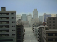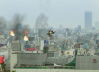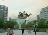 Dino Stegazord stalks through the city as Japanese citizens flee. |