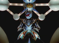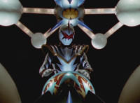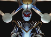 End of final shot is textless, unlike source; cuts follow-ups of new Zord arms' eyes blinking red. |