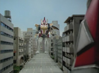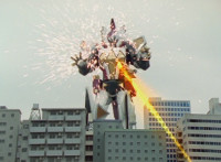 Cuts follow-up of Megazord getting knocked back. |
