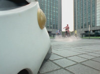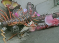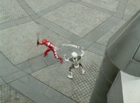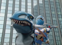 Cephalazord races down the street, boxing all the while. |