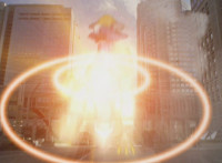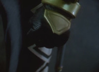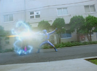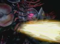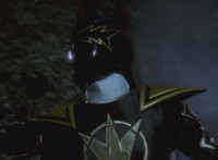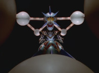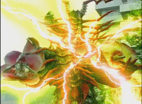 Black gets up and motions his Brachio Staff around in a circle, creating an energy orb. He speaks, then flings it forth, hitting Insectolite and bursting him. |