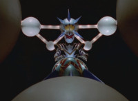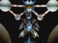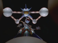 Dimetro and Cephala roar uncomfortably in captivity, as the starshaped device blinks. |