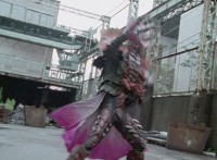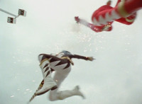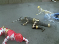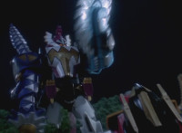 Cuts crossfades between shots which included superimposed shots of unmorphed White and the captured Zords. |