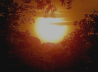 Sunset in the forest. |