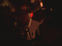 Zoom in on a starshaped device on the side of the Zord barrel. |