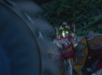 Most shots shortened to reduce dialogue; cuts follow-ups of Zords in barrels and Red reacting. |