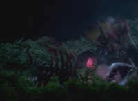 Trims shot 2 so we don't see Blue impale the monster VR JB style; cuts shot of blinking monster eye between shots 2 & 3; cuts follow-ups of Rangers using Z-Rex Blaster on monster. |