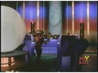 Distant shot near/behind Viewing Globe, as Alpha 5 is turned around, looking up at Zordon, then faces Globe, talks and jerks arms, then turns back around. |