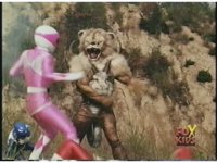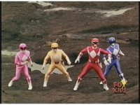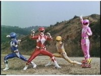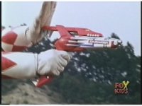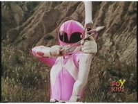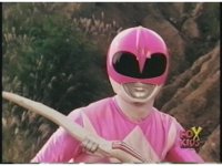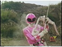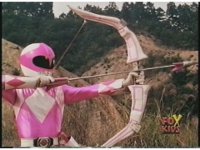 Side angle on Pink Ranger, firing arrow from Power Bow. |