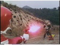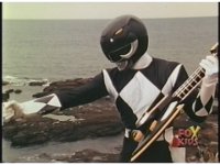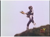 Quick zoom in on Black Ranger stop cliff, aiming Power Axe cannon right at us. |