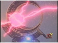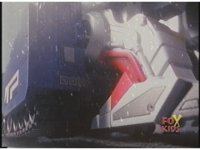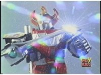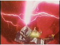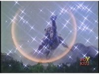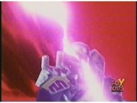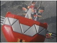 Close on Megazord as it finally ceases spinning, raises fist, and punches at the screen. |