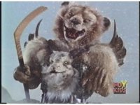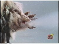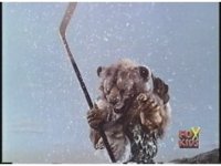 Zoom out as Goatan pulls out a big hockey stick, points at us with left hand, makes fist, then starts whipping stick overhead while rushing forth. |
