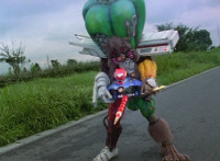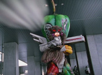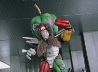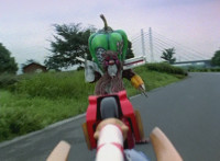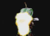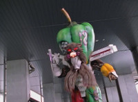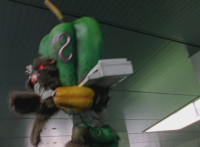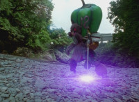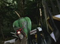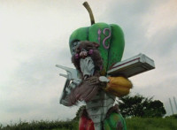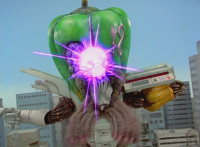 Copyotter pulls out a pair of peppers and tosses them at Thundersaurus Megazord sparkily. |
