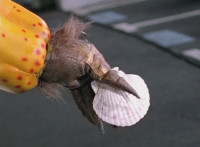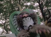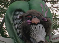 Zoom in on Copyotter talking, then beating his hands against his chin, the Rangers react, he fires seashells at them, so Blue slashes them down with his Saber, and they fall to the ground in a pile as Copyotter reacts. |