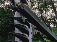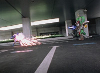 White leaps and strikes his sword, only to clash into Copyotter's copy of it, which he uses to sparkily slash him back. White rolls, recovers, then gets superspeed dashed by the monster sparkily. |