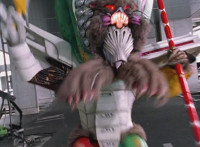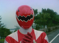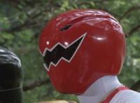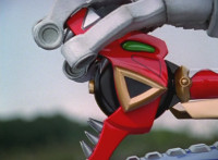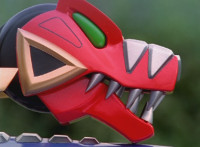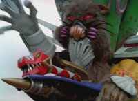 Copyotter realizes the Tyranno mouth needs to be open, and proceeds to do so. Red reacts, the monster talks, then fires his Z-Rex Blaster forth. |
