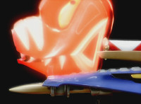 Copyotter jerks his moustache hair dangles, as White suddenly flies out of the smoke, Super Dino Mode giving him flight powers. |