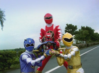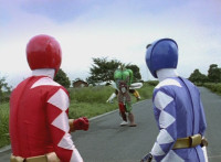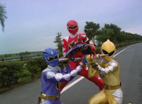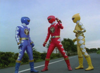 The three Dino Rangers morphing sequences: Blue, Red, Yellow. |