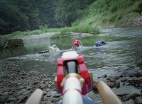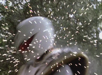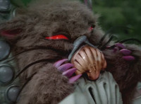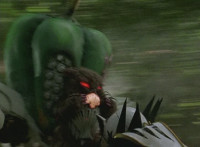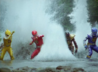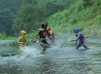 Cuts follow-ups of monster gloating and Rangers struggling in water. |