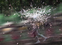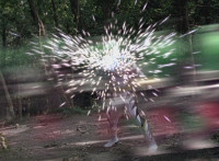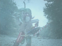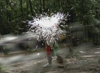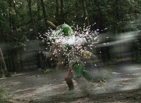 White pulls off of Copyotter, leaving him against the tree, crackling, bursting, and then exploding massively as the Ranger walks away. |
