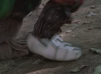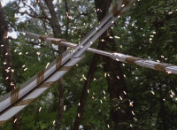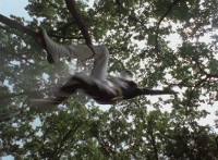 Trims start to remove zoom out; Cuts follow-up reverse angle showing off the stick sticking out of the tree. |