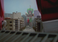 Japanese citizens flee as Copyotter harasses an empty phonebooth. |