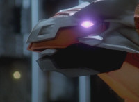 White crosses his arms and morphs into Super Dino Mode, close-ups of his suit details following. The Rangers react, zoom in on Red speaking. White raises his arms, clenches his fists, then readies the blades on the end. Copyotter speaks, then fires eyebeams. |