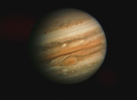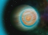 The great red spot on Jupiter turns into a glowing yellow swirl. |