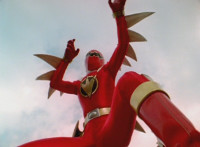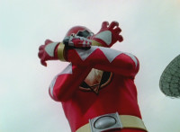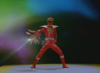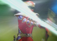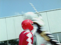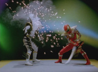 Red rushes over, slashes Evil White Ranger in the chest sparkily, then hops up and begins to so again at a downward angle. |