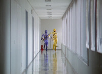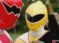 Yellow nod-talks to her Morpher, then the three Rangers rush off together. |