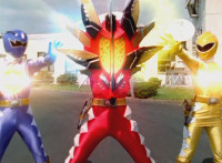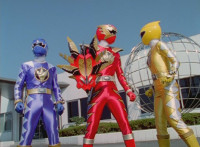 The three Dino Rangers morphing sequences: Blue, Red, Yellow. |