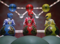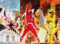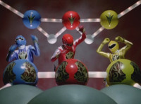 The three Dino Rangers morphing sequences: White, Red, and Yellow. |