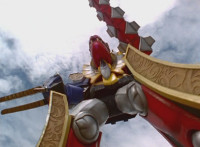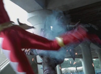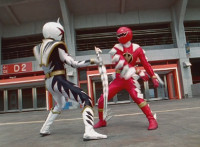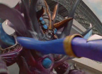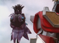 Cuts follow-ups of Red in cockpit hearing from Styraco, who teleports the Shield of Triumph into his hands, then the Rangers talk a lot in the cockpit. |