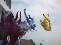Recycled; actually a two-side split screen of Blue & Yellow merged with a Red sequence from another ep added in via US (since this particular montage order doesn't exist in Aba). |