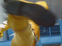 Cuts follow-ups of Yellow leaping out of cockpit to grab item, then Dino Stegazord recovering. |