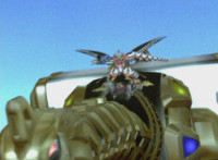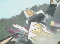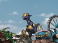 Deadwood & Skortch appear behind Dino Stegazord, the latter then blasting it, shaking up Black, who then summons. |