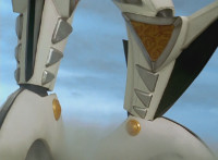 Cuts shots of Morpher faceplates talking between final two shots; cuts follow-ups of Drago and Stego's heads lying on the ground. |