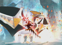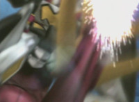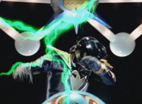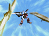 Skortch sparkily butts his head into Dino Stegazord, knocking it back. Black recovers, then summons. |