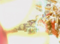 Struck by the Stega-tail attack, Triceramax bursts and staggers back. Triassic speaks, as the Triceramax Megazord spins its left arm axe, shooting energies at Dino Stegazord, overwhelming it, Evil White reacts in the crackling cockpit, before Dino Stegazord explodes, fling White Drago and Stegozord away. |