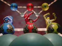 Valkasaurus Megazord poses completed, the Rangers within standing there, until Yellow talks to Black, who responds, Blue kinda ignoring White behind him, Red speaks as they turn forth. Jade Gladiator approaches, the Rangers speak quickly, Red talking and punching forth. Valkasaurus sits on Brachiozord's tail as he buries his head downward. The monster pauses and gestures, Red speaks, as Valkasaurus sleds down Brachio, who then lifts his head and sends the Megazord flying upward, grabbing its axes and energy slashing forth at Jade Gladiator repeatedly, sparking and bursting him. Valkasaurus then tosses the glowing axes forth, doing more damage, before tossing its glowing horn down to finish the monster off, bursting him one last time. The Megazord lands, Jade Gladiator collapses and explodes massively. White touches his visor, as the Rangers make celebratory gestures and talk amongst themselves. |