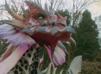Cuts before monster motions hands; cuts follow-up close-up of monster. |
