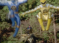 Altered to fit viewscreen; trims start; cuts before Rangers rush forth; cuts follow-ups of monster beating on Rangers, Black especially, who gets hit with friendly fire. |
