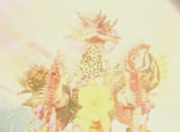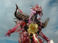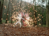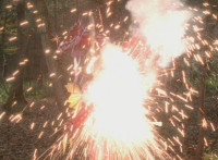 White and Ruby Dragon break off, then streak into the air, where they clash, sparkily kicking each other at the same time. |