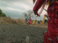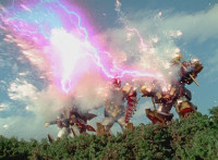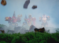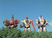Trims start; cuts follow-ups of Mezodon Megazord forming. |