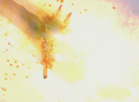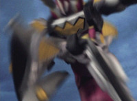 Shortened to cut Red striking monster with sword which gets blocked, cuts before monster kicks him; cuts follow-up of kick impact. |