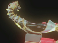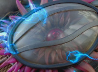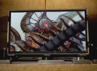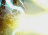 Ugly Monster gets sparkily struck by the Stega spine sawblade effect, then White talks in his cockpit. |