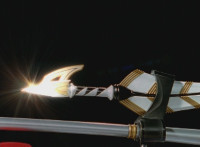 Dino Stegazord to ready its Stinger staff horizontally, projecting it forth with a boost of power. |